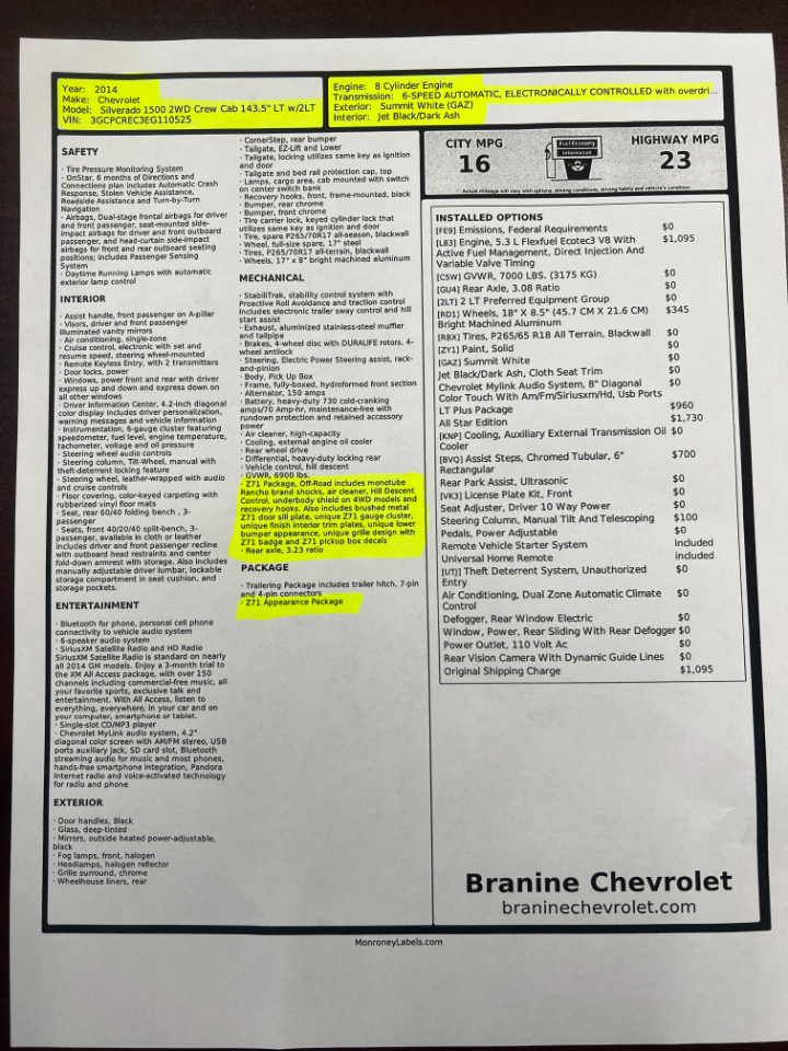LT PACKAGE, CREW CAB, Z71, 2WD, 5.3 V8