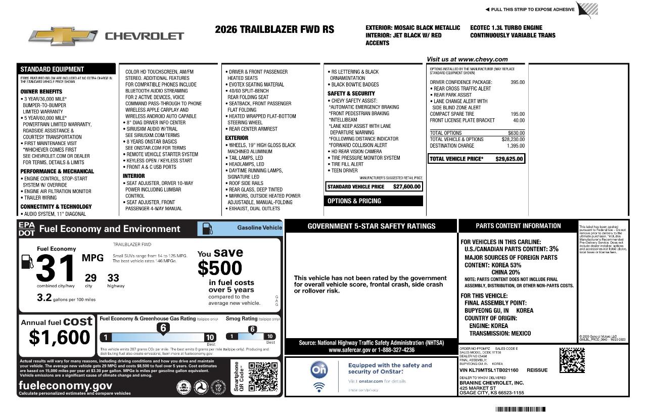 We explain our dealer discounts and applied Manufacturer Rebates for EVERY New and Pre Owned vehicle. No guessing whether or not you qualify! No additional ADDS or CRAZY Fees! The only fees you pay is our $299 Documentation Fee and the Sales Tax. The Price You See is the Price Your Pay! - Every Car - Every Time! Only at Branine Chevrolet.